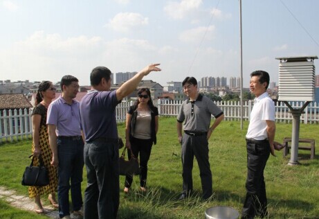 株洲市局局长周细海(右一)陪同省局副局长田浩(右二)到基层台站调研。