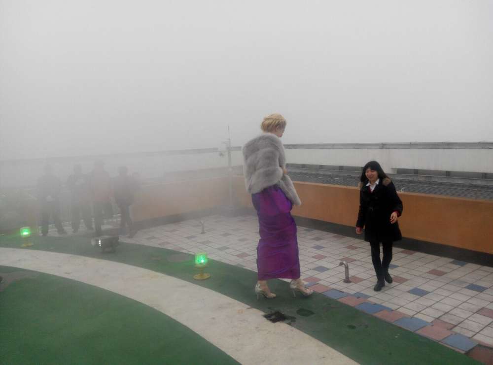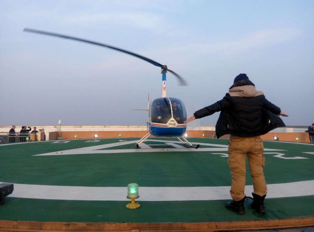 图:接送女神的直升机在希尔顿屋顶顺利降落