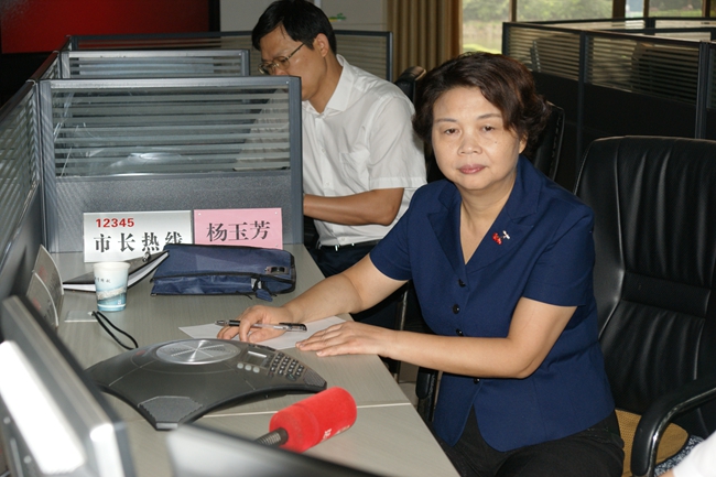 三湘华声株洲分站7月7日讯 今天上午8:30,株洲市委常委、副市长杨玉芳来到热线办接听市长热线电话。