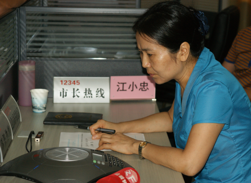 株洲市茶陵县县长江小忠接听“12345”市长热线电话