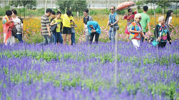 国庆长假期间,白关花海的格桑花、硫磺菊、一串蓝等花朵竞相开放,赏花市民络绎不绝。据统计,从长假第三天开始,每天来赏花的市民约达3万人次。谢慧 摄