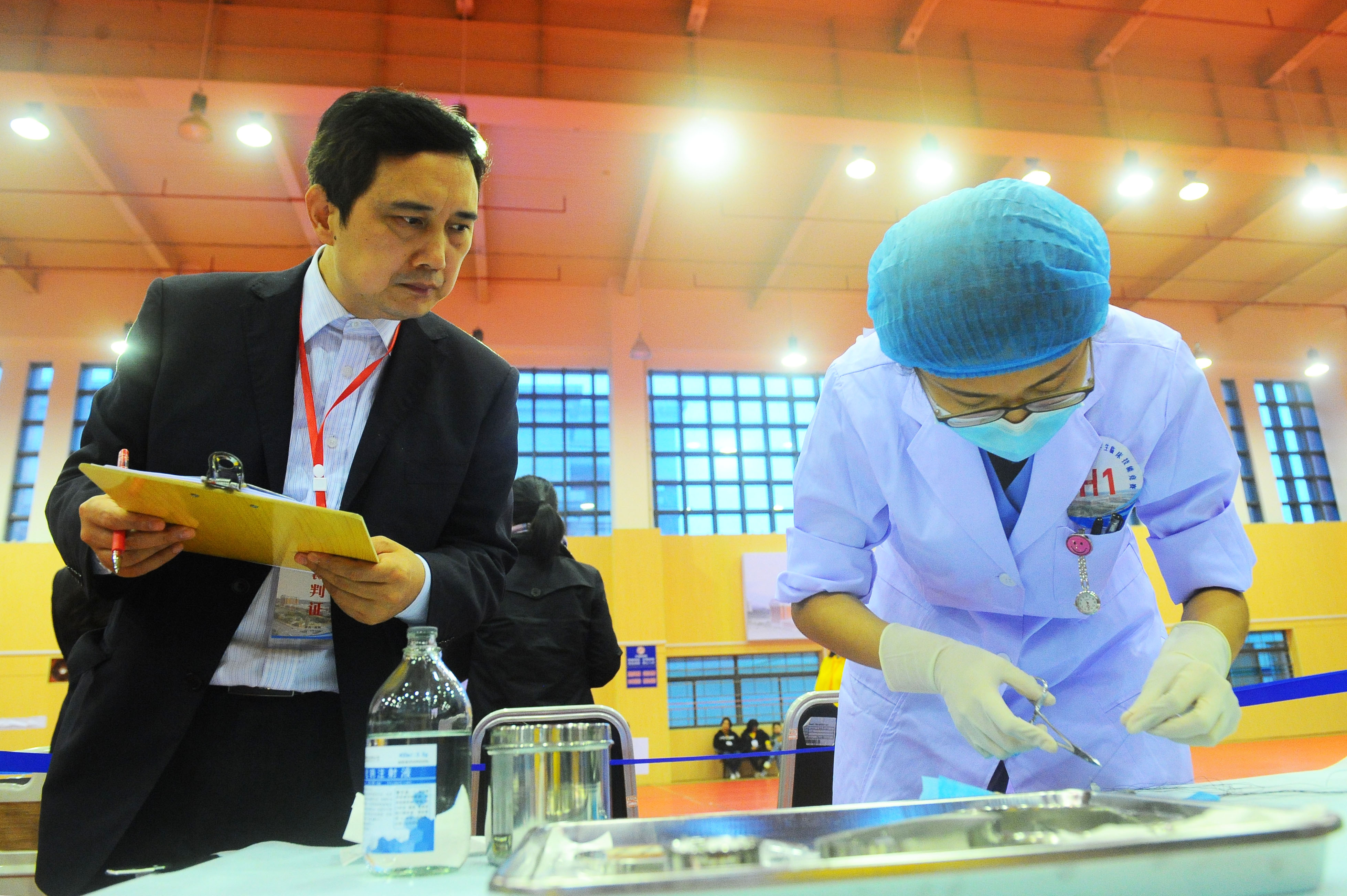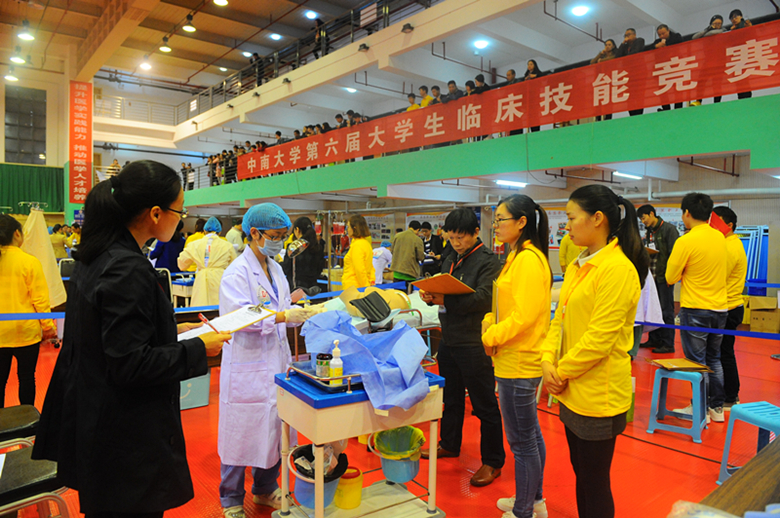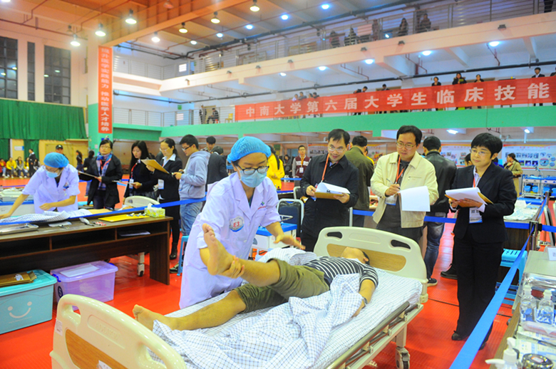 该项竞赛是省内医疗行业规模较大、层次较高、影响较广的一项大学生临床技能竞赛。本届比赛首次由长沙以外的湘雅附属医院承办,共91名 “湘雅系”医院的学生参赛,分内科、外科、妇产科、急救等6大组,选手以仿真模拟人和医学模拟器具及标准化病人为对象进行操作,主要考察选手对专业理论知识和基本临床技能等方面的熟练程度外,以及选手在医德医风、医患沟通等方面的综合素质和能力。