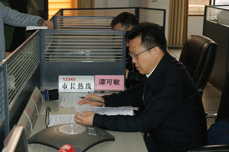 三湘华声株洲讯 2016年11月2日上午9时,株洲市副市长谭可敏来到市长热线办公室接听市民的投诉建议电话。