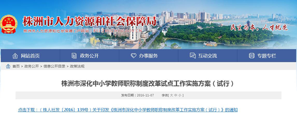 三湘华声株洲讯 建立统一的中小学教师职务制度;小学教师可评正高职称;一级教师职称评审权下放至省直管县(市)……今日,市人社局官网公布了《株洲市深化中小学教师职称制度改革试点工作实施方案(试行)》(以下简称方案)。