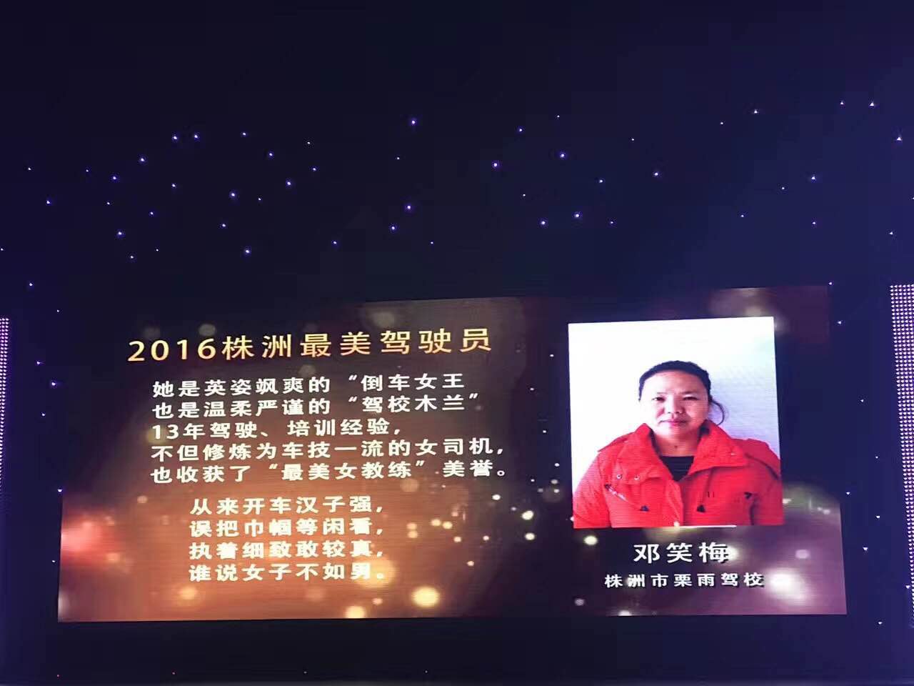邓笑梅、张先其等10人凭借感人的事迹、扎实的工作作风和积极乐观的心态,赢得了广大市民的认可,从众多候选人中脱颖而出,获得2016年株洲“最美驾驶员”荣誉称号。