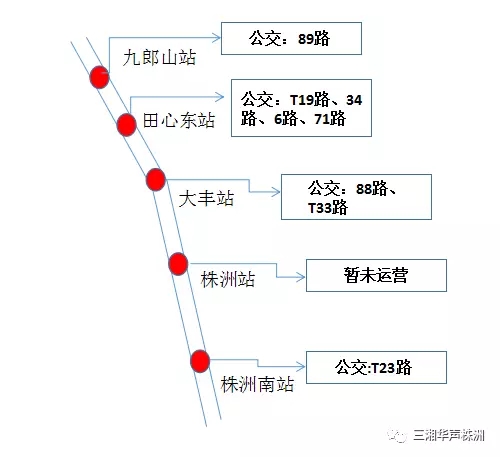 T23路线。线路走向由“五三机械厂—南华村—早禾坪村—杨柳冲—芦建路口—车站西路”调整为“株洲南站—南华村—早禾坪村—杨柳冲—芦建路口—车站西路”,运营时间延长5:40—22:30(上行)6:10—23:10(下行),票价不变。