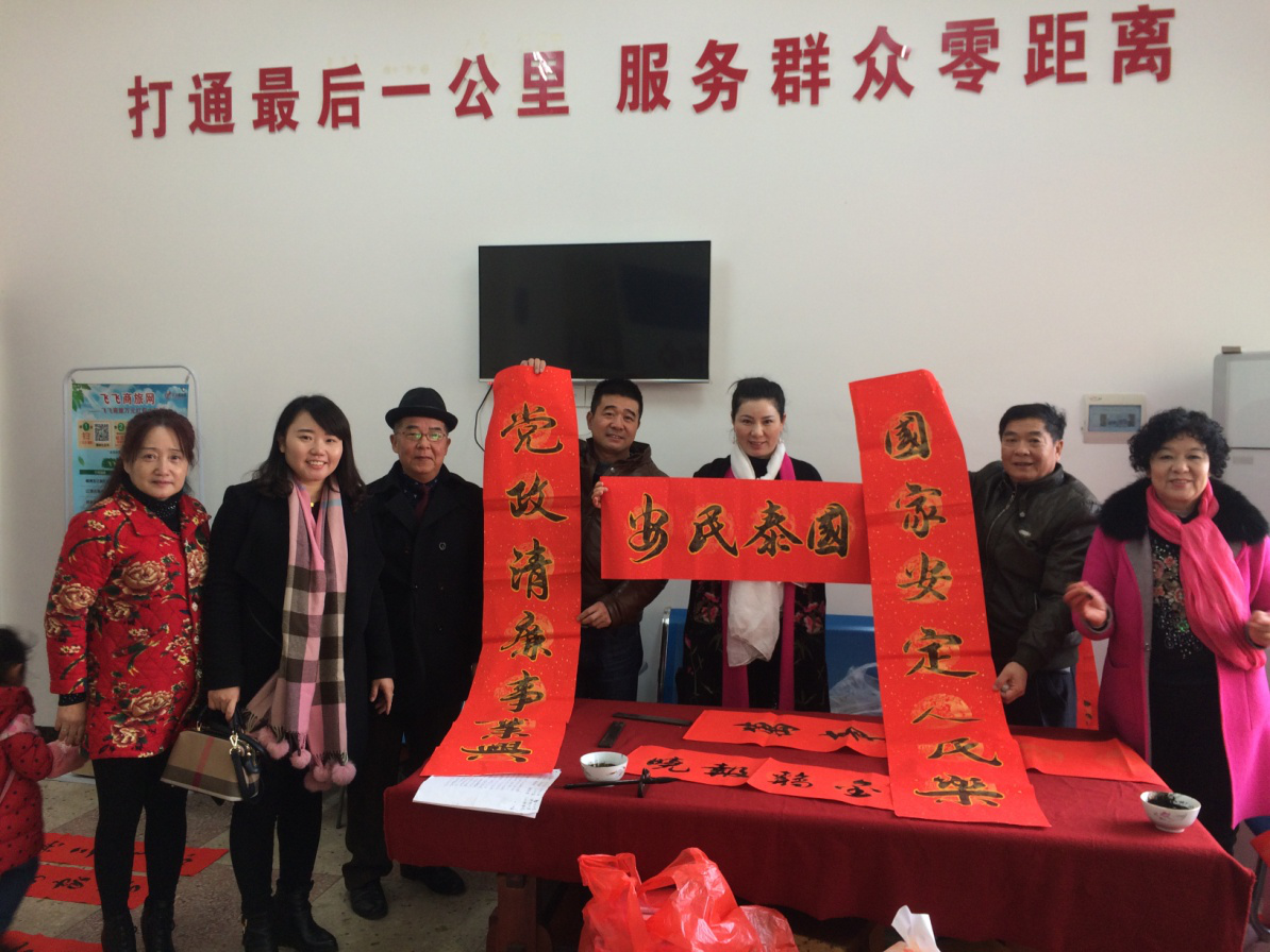 三湘华声株洲站讯1月20日,株洲市荷塘区月塘办事处荷塘铺村便民服务厅翰墨飘香,洋溢着十足的年味儿。原来,荷塘铺村正在开展送春联活动,2名书法家现场挥毫,为村民送上了近150副春联。