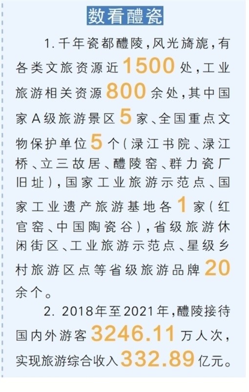 2018年至2021年,醴陵接待国内外游客3246.11万人次,实现旅游综合收入332.89亿元。其中,陶瓷工业旅游的贡献功不可没。