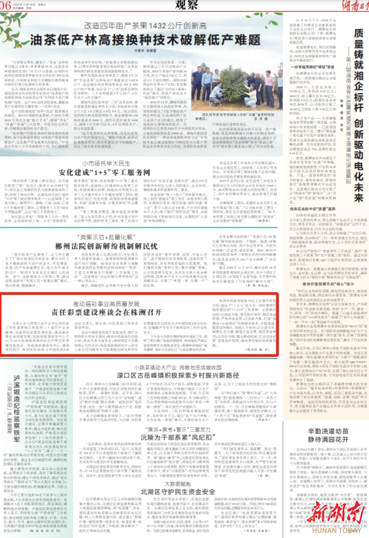 湖南日报·新湖南客户端11月15日讯(记者 陈卫权 通讯员 杨 丹)为深入学习贯彻习近平总书记对民政工作的重要指示和党的二十届四中全会精神,交流责任彩票发展经验,推动福彩事业高质量发展,民政部政策研究中心于11月14日在湖南省株洲市召开责任彩票建设座谈会。民政部政策研究中心、湖南省民政厅、株洲市民政局、《中国民政》杂志社负责人,部分省、市民政部门等相关领导参加。
