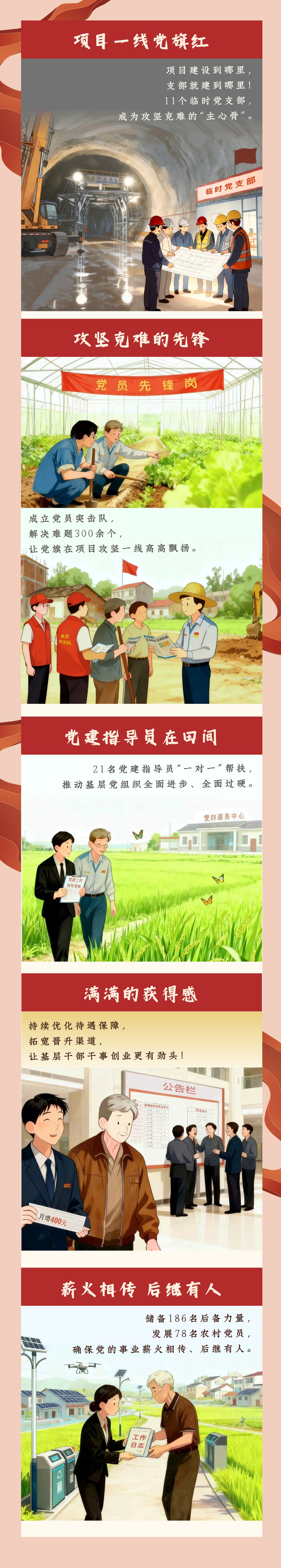 炎陵县发扬“支部建在连上”传统,在重点项目一线建立临时党支部,汇聚力量、破解难题,推动项目建设提速增效。同时,选派党建指导员下沉基层,强化组织建设与党员管理,并通过提高待遇、拓宽渠道、储备人才等方式激发基层干事活力,有效发挥党组织战斗堡垒和党员先锋模范作用,为全县高质量发展注入强劲动力。