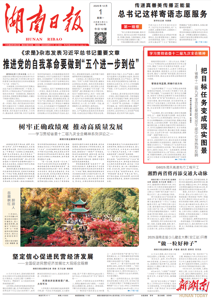 “全会科学擘画了‘十五五’时期全省高质量发展的宏伟蓝图,为今后的工作指明了方向、提供了根本遵循。”宁远高新区党工委书记毛昌麒说,将把学习贯彻全会精神作为当前首要政治任务,聚焦“高”和“新”的发展定位,全力主攻项目招引落地、强化科技创新、优化营商环境,在现代化产业体系建设上攻坚突破,将全会精神转化为推动园区提质增效的强大动力和生动实践,在全省发展大局中展现宁远高新区的担当作为。