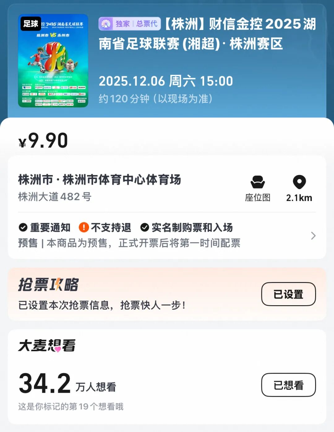 1.湘超联赛实行实名制购票及入场,一人一证一票,仅支持电子票。本次开票包含主、客场队伍球票,请球迷朋友购票时按需购买;