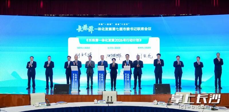 会议通报了三市“十五五”规划情况及长株潭一体化发展工作整体考虑,现场签署《长株潭一体化发展2026年行动计划》及系列合作协议。