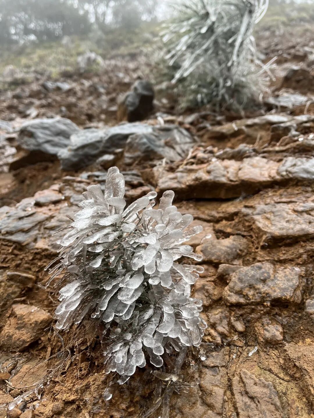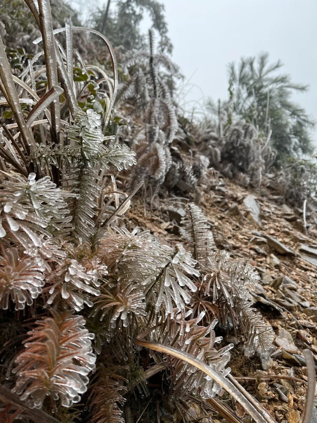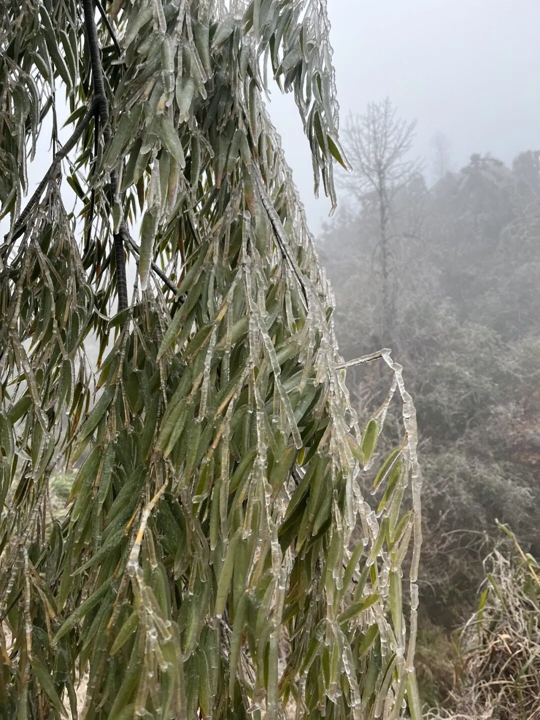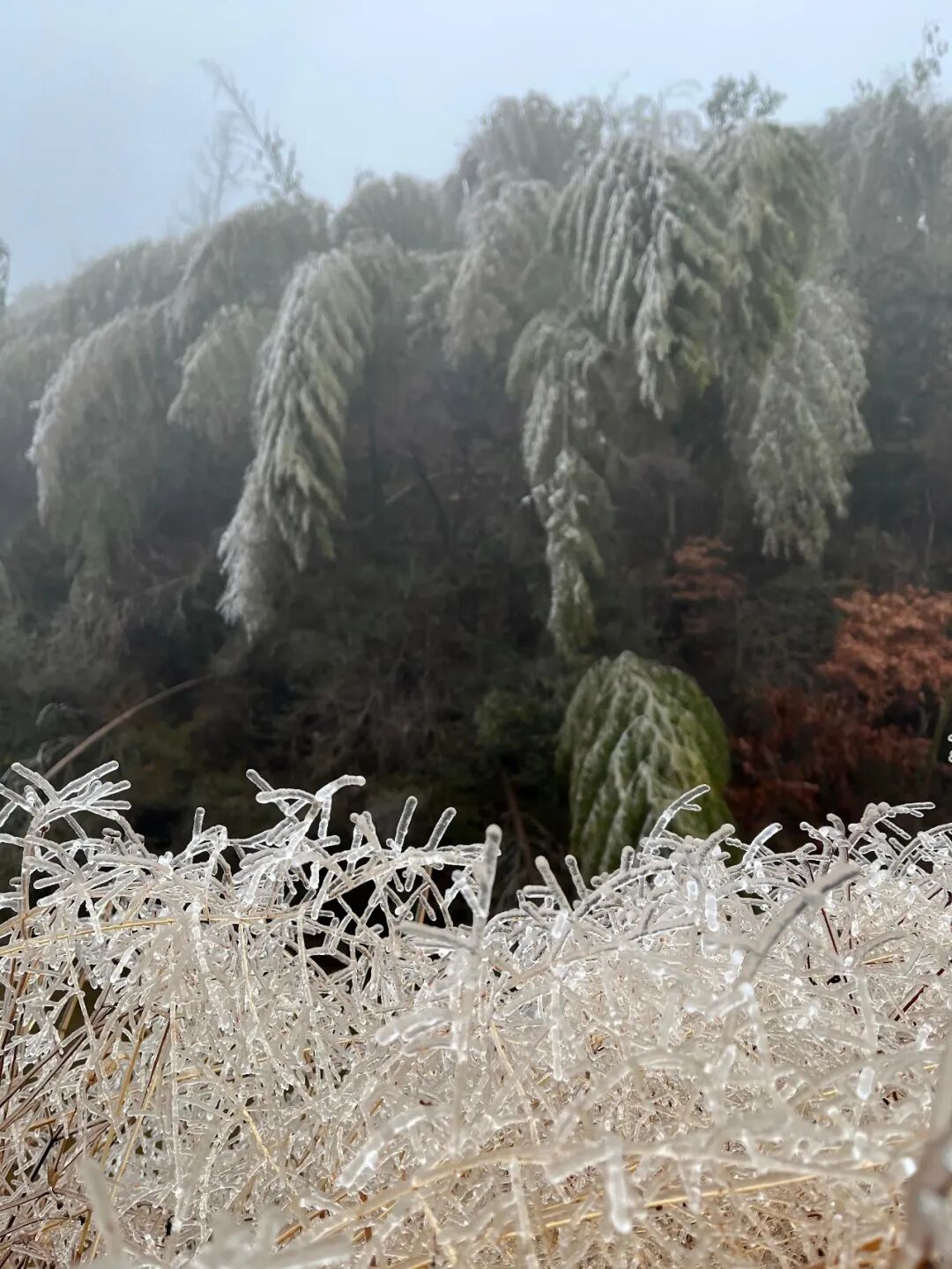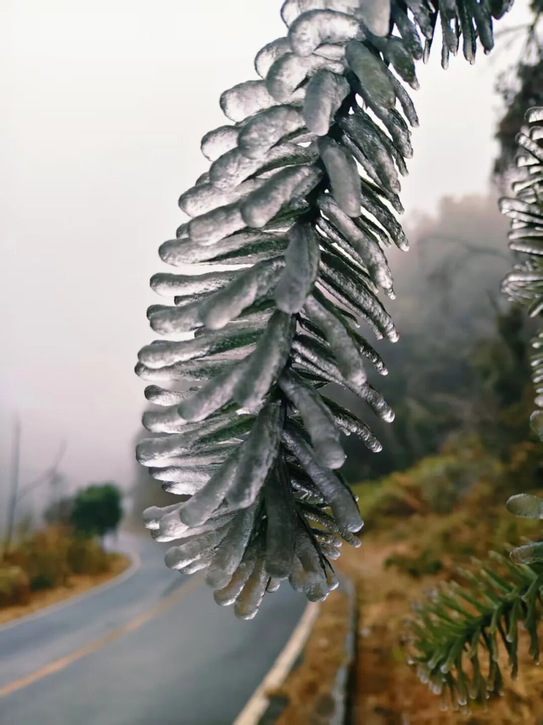 当冬日的枝头开始结冰
