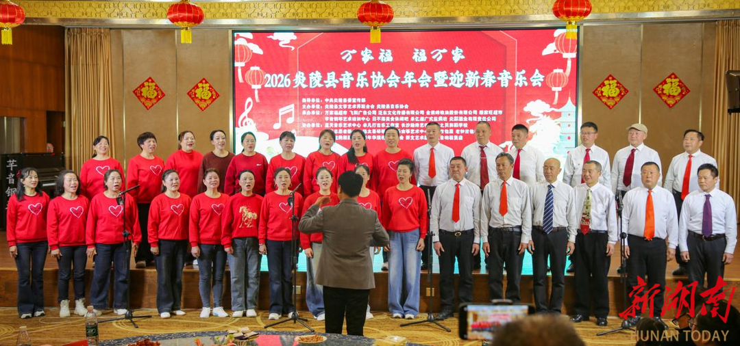 湖南日报·新湖南客户端2月3日讯(通讯员 唐莉婵 张友辉)2月2日晚,炎陵县2026年迎新春音乐会在雄森酒店成功举办。本次活动由中共炎陵县委宣传部指导,炎陵县文学艺术界联合会、炎陵县音乐协会主办,得到了多家单位的承办支持,以及十余家文艺培训机构和社团的协办参与。县委宣传部、县文联、县文旅广体局等宣传思想文化系统相关单位负责人及县文联所属协会负责人,县音协会员代表,各文艺团体、赞助单位、协办单位代表及演职人员等300余人欢聚一堂,弦歌和鸣,共迎新春。