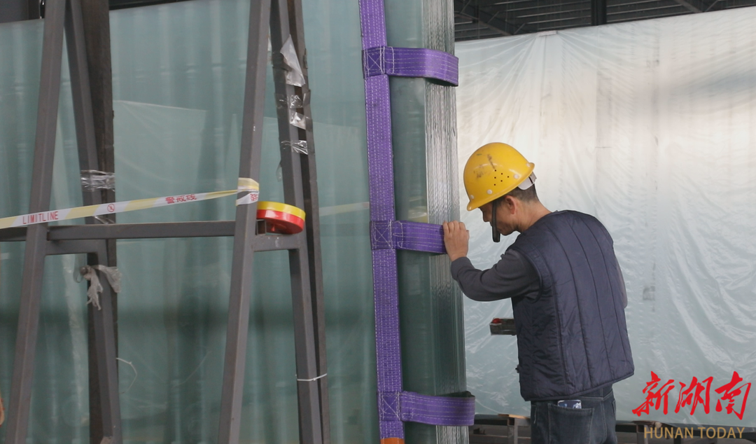 走进生产车间,一派繁忙有序的景象映入眼帘。一摞重达2.5吨的玻璃原片,在航吊机的精准操控下,从原片区平稳吊装到位,随即接入全自动传送带。随着传送带匀速运转,玻璃原片被精准送入主机,开启自动化切割工序。切割好的玻璃随后流转至磨边、钢化、丝印、包装等后续工位,各环节紧密衔接。所有产品经严格检验合格后,即可发往海内外市场。