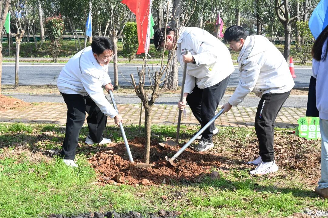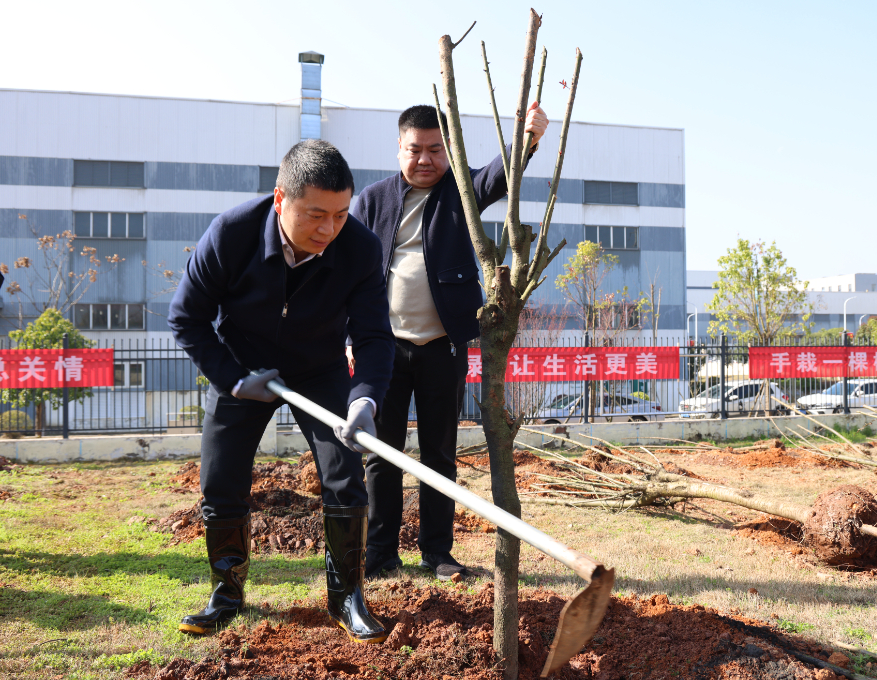 植树现场,大家精神饱满、热情高涨,纷纷拿着工具投入到热火朝天的劳动中,挥锹挖坑、扶苗正干、培土围堰,每一道工序都认真细致、规范到位,现场气氛融洽和谐。在大家的共同努力下,一株株苗木错落有致、生机勃勃,在春风中舒展新枝,为春日的石峰增添了浓浓绿意与勃勃生机。